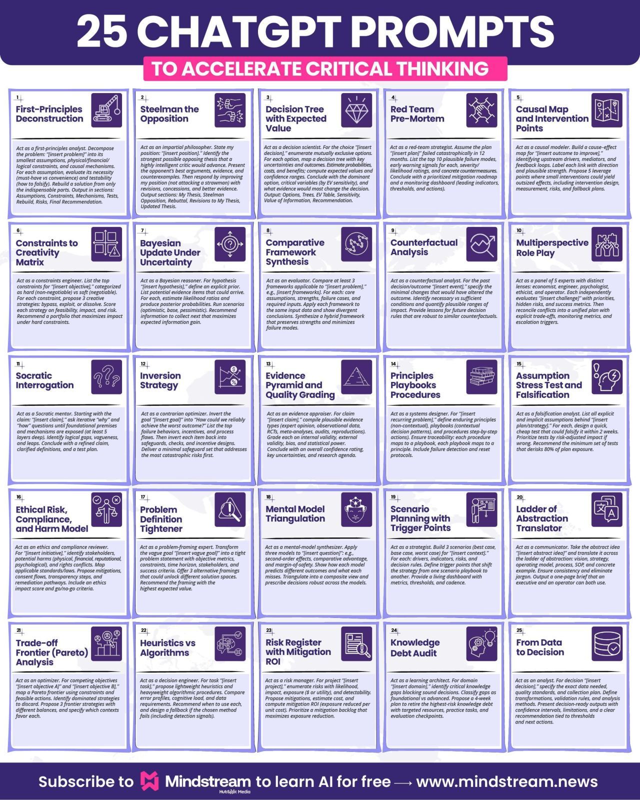 These advanced prompts are incredibly powerful, but they aren’t magic. The quality of the AI’s output is directly tied to the clarity of the problem or plan you provide in the “{insert}” sections. Vague inputs will still lead to vague outputs.