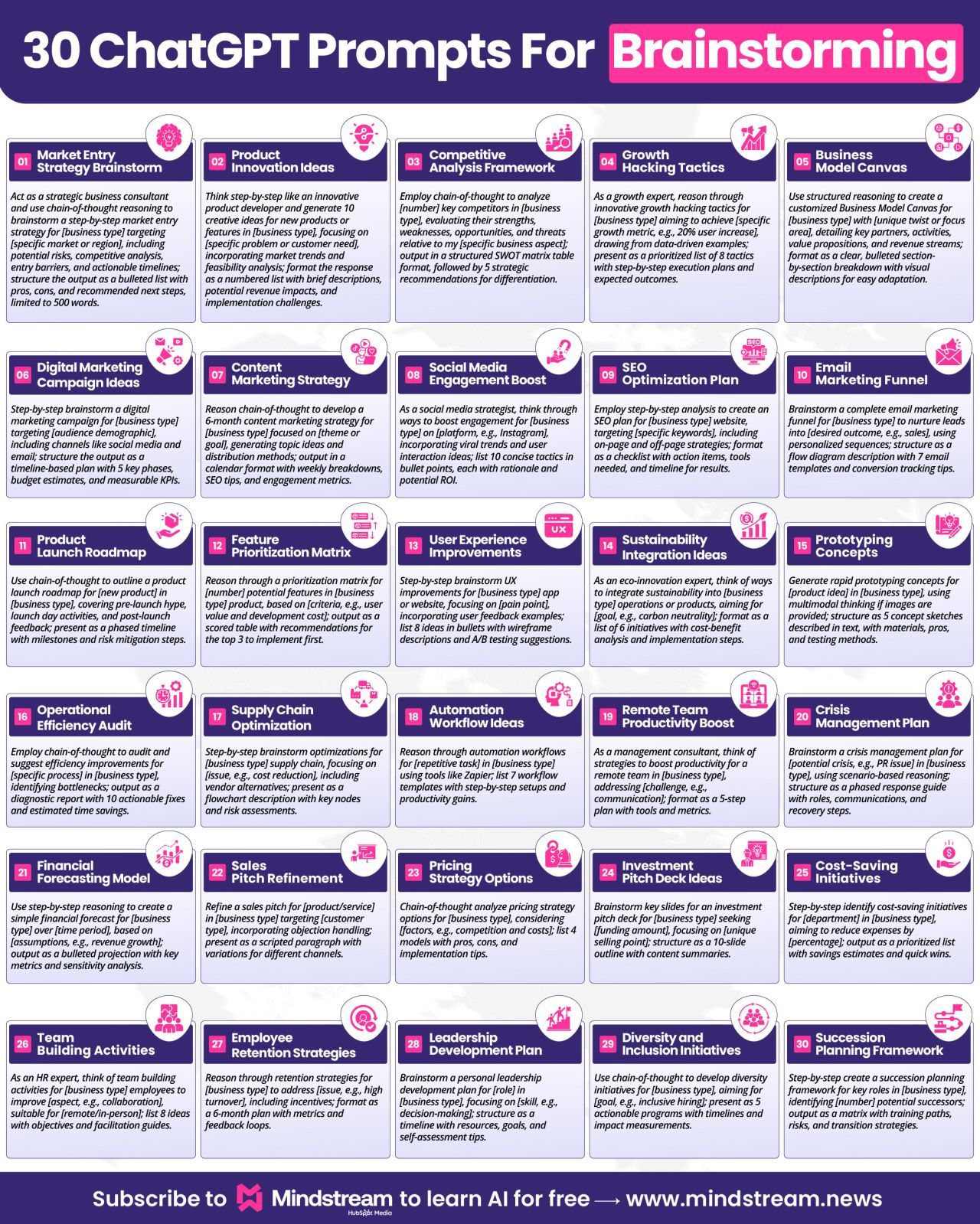 The days of agonizing over where to start your business strategy are officially behind us. I just saw this incredible post from an AI professional that tackles creative blocks head-on. The author curated a specific list of inputs designed to jumpstart everything from market analysis to product innovation.